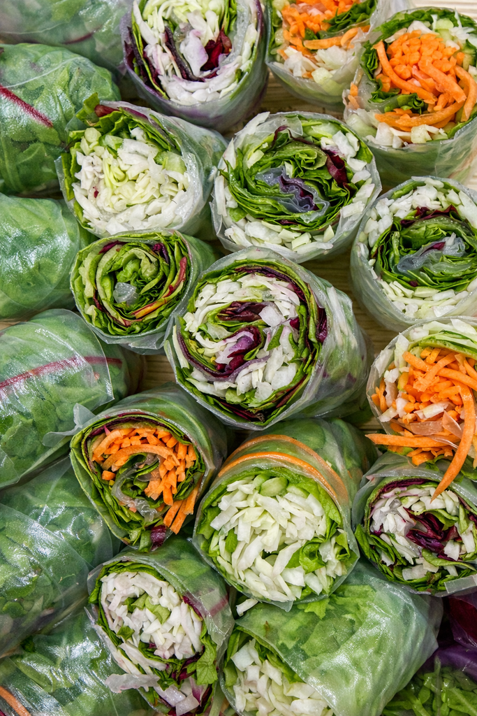 ספרינג רול עם ירקות טריים ורוטב פיקנטי בצד