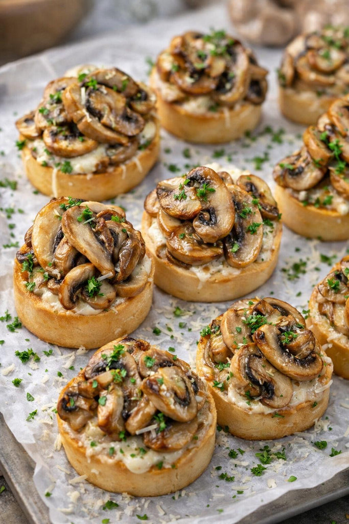 מיני קישים אישיים עם בסיס פריך ועדין, במילוי קרם שמנת עשיר וקטיפתי, פטריות מוקפצות בטעם עמוק וגבינת פרמזן מגוררת שמוסיפה עומק וארומה אגוזית. כל יחידה נאפית עד הזהבה ומעוטרת בעשבי תיבול טריים להשלמת המראה והטעם.
