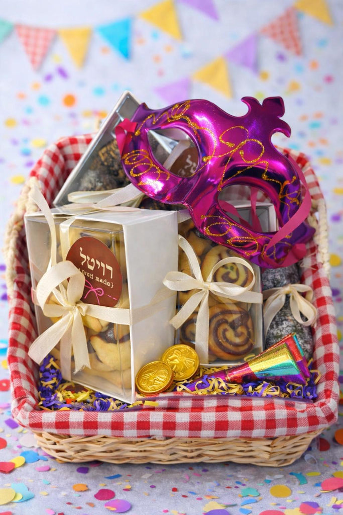 מארז פורים מעוצב שמביא איתו את כל השמחה של החג בקופסה אחת. סלסלה חגיגית מלאה במבחר עוגיות איכותיות, אוזני המן בעבודת יד, כדורי שוקולד ומגולגלות שוקולד, מתוקים מפנקים ואקססוריז צבעוניים לאווירת פורים מושלמת – כולל מסכה, מטבעות שוקולד וקונפטי שמוסיף קסם לכל פתיחה.
